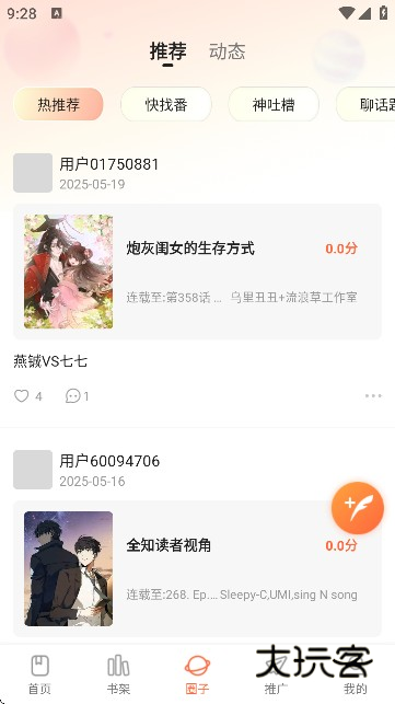 4、圈子社区:与其他漫友一起讨论剧情走向、角色人设,分享吐槽与推荐。