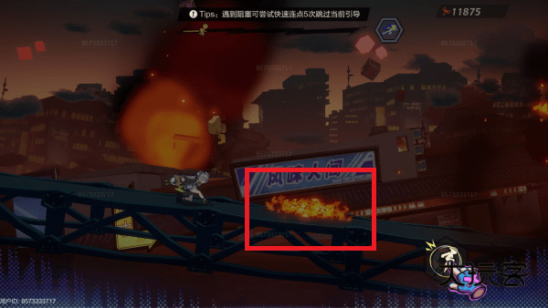 5、当遇到这种很长的危险路段时,我们点下跳跃在空中再次点击一下二段跳就过去了。