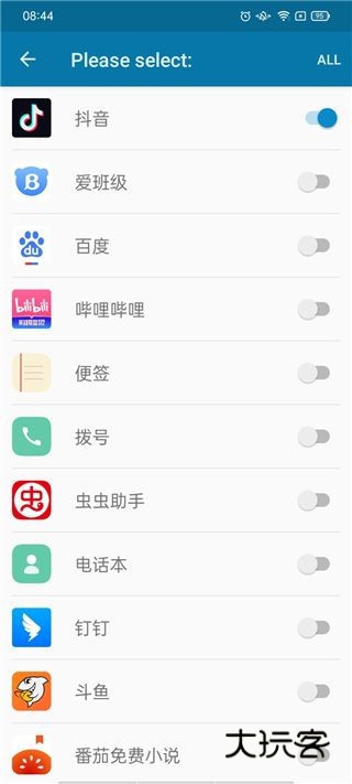 3、进入软件点击Select apps选择好你需要添加在灵动岛上的应用,点击右上角ALL可一键选择。