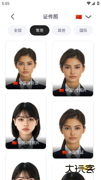 6、点击证件照还有多种规格的证件照可以选择制作哦。
