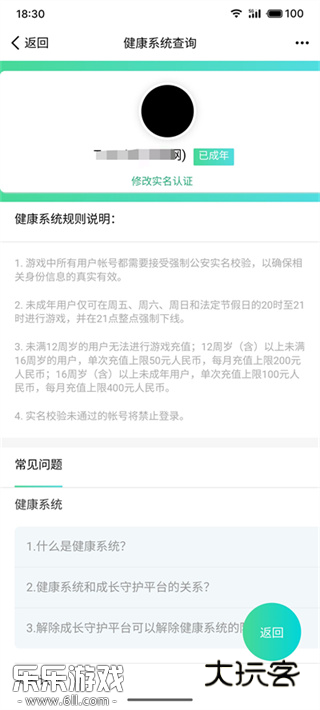 6、点击后进入腾讯健康系统界面,点击该界面上的实名认证查询选项;