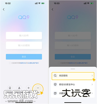 1、打开最新版手机QQ应用,在登录页面点击【更多】,在菜单中选择【找回密码】;