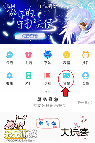 3、接下来我们就会进入到个性装扮界面,我们点击界面下方的背景图标。