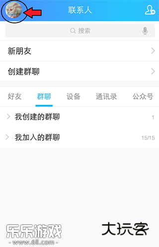 1、首先打开花灯下载网下载好的qq,进入qq后点击界面上方的搜索选项;
