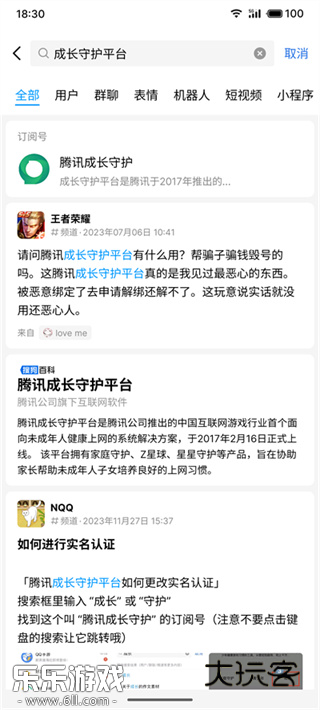 2、点击搜索后输入成长守护平台,点击搜索结果中的腾讯成长守护订阅号;