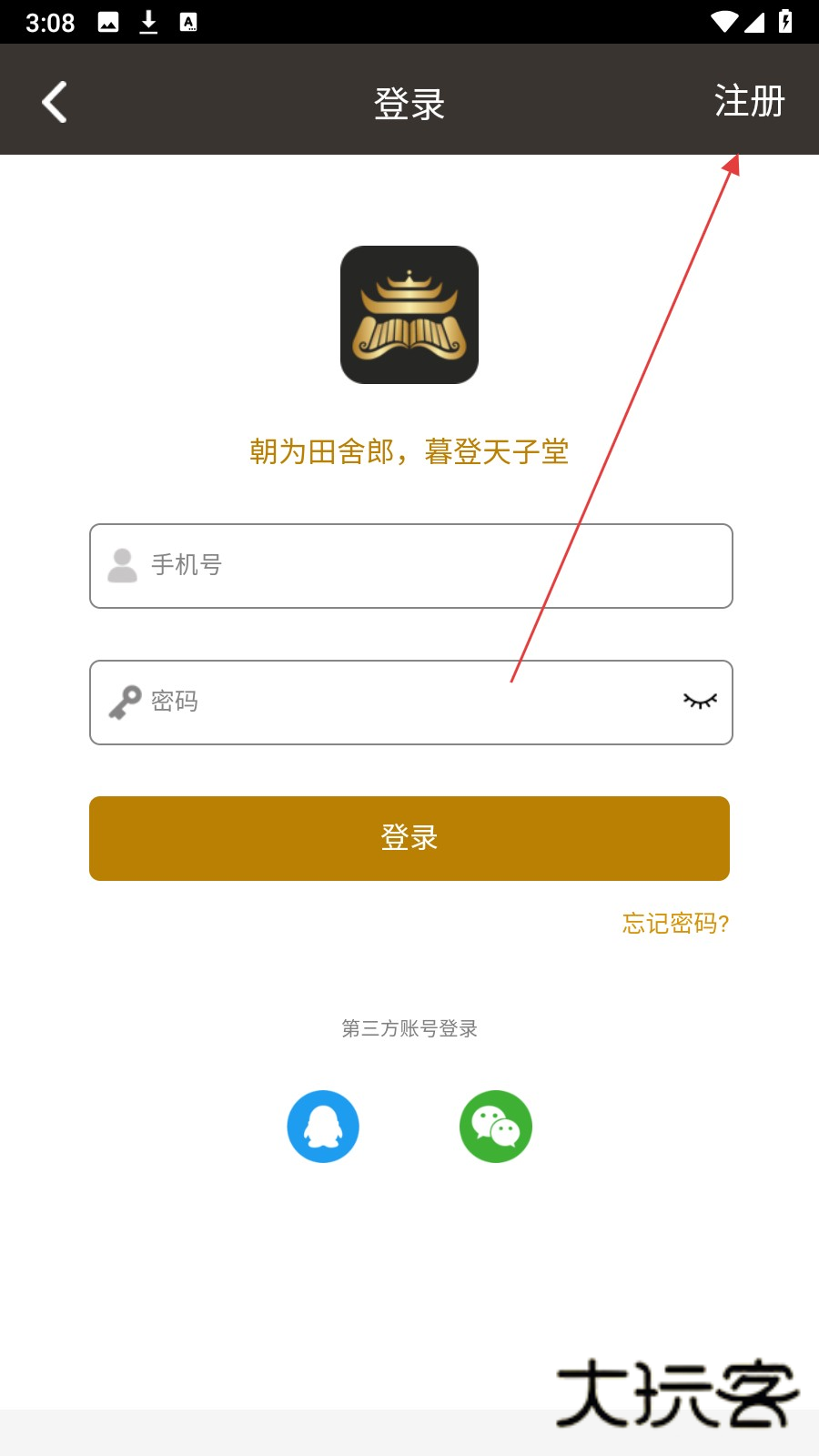 3、在登录页面,点击右上角【注册】,进入注册页面。