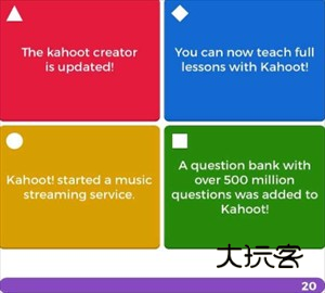 Kahoot是一款全新的学习软件,将游戏和学习相结合,对于不爱学习的孩子们来说,可以帮助在玩游戏的过程中,轻松学习知识,娱乐化教学,让孩子更加轻松掌握学习内容哦,还有着多种教学模式提供,并为用户打造纯净、流畅的学习环境,随时随地都能轻松学习哦,丰富的学习内容以及测验题库,让孩子从中爱上学习,并有效提升学习成绩,更多好用工具也都在这里等你探索哦。