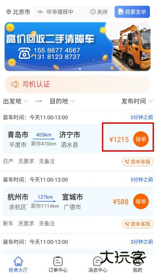 3、订单筛选更便捷,你可以根据出发地、目的地、发布时间等信息进行查找;