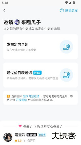 1.策划团队现在可以自由邀请和选择艺术家!即使在你不在家的时候,你也可以很容易地找到你的商业伙伴,并迅速开始你的完美合作。