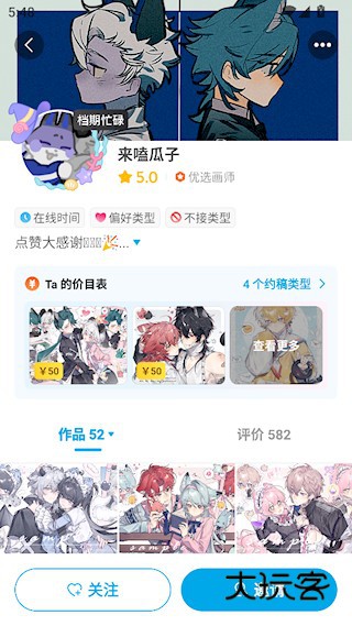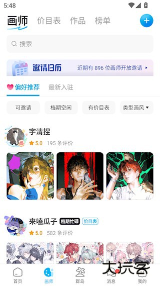 米画师软件里有着大量的画师入驻,是国内很大的线上约稿平台,平台上有着完善的约稿的流程以及保障,用户在软件中可以自由寻找自己喜欢的画师进行约稿以及沟通,满足无数用户需要约稿的痛点,为无数用户提供一个可靠的平台。