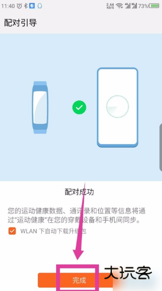 第六步,来到配对引导页面后,根据提示进行操作,成功配对后,点击页面底部的完成选项