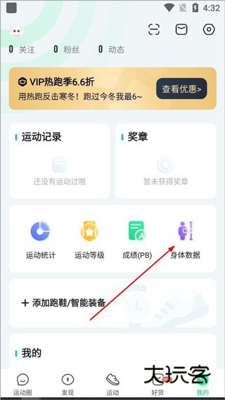 1、打开咕咚跑步app,绑定咕咚智能设备,点击我的页面,查看身体数据;