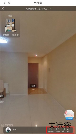 2、选择房子进入,点击上方的区域可以进入vr看房,看完之后可以选择在线聊天或是电话资讯