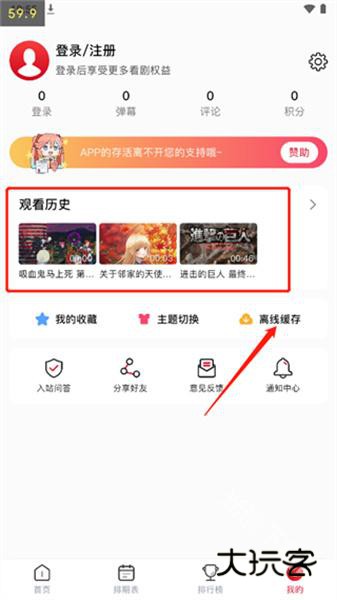 4.最后来到【我的】页面中,可以查看刚刚缓存的日漫资源以及查看观看历史浏览记录等。