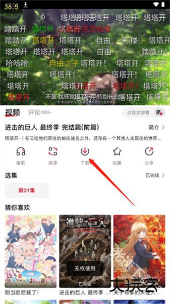 1、在软件中找到自己相看的动漫剧集,点击进入到播放界面,然后才能看到弹幕;