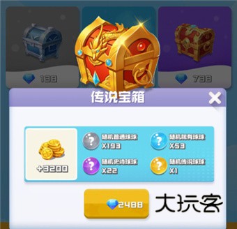 传说宝箱内除了必定开出1颗传说球球,还含有大量金币和其他球球奖励。