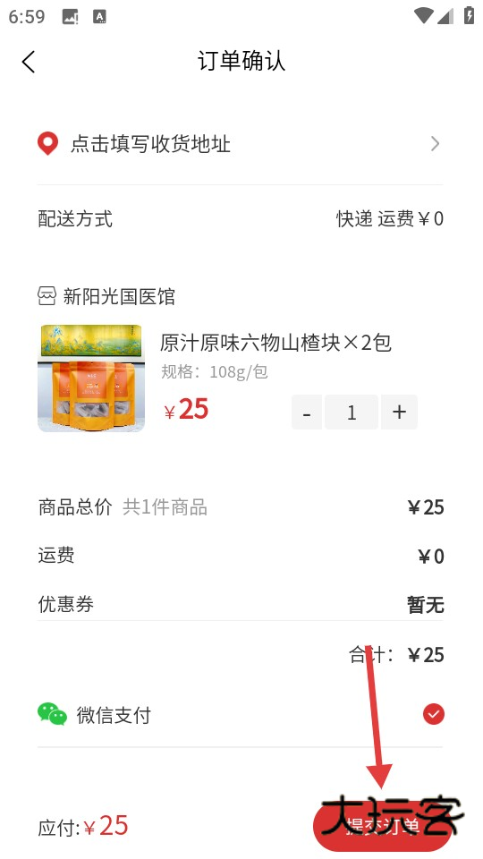 4、在订单确认页面,填写收货地址,确认商品、配送方式等信息无误后,点击【提交订单】完成购买。