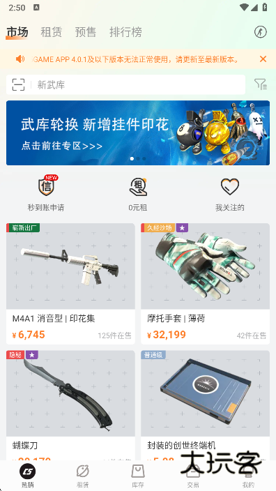 【饰品租赁】: 皮肤试玩零元租,支付宝信用免押,无门槛玩饰品。