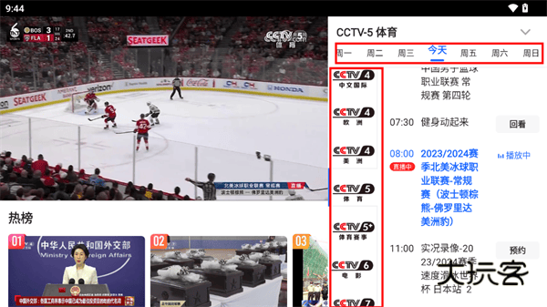 8、点击节目单,可以查看不同直播频道每一天的节目清单