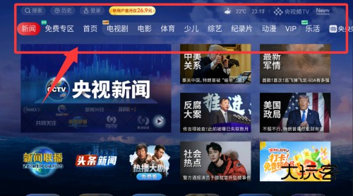 1、导航栏,可以选择自己感兴趣的分类进行观看