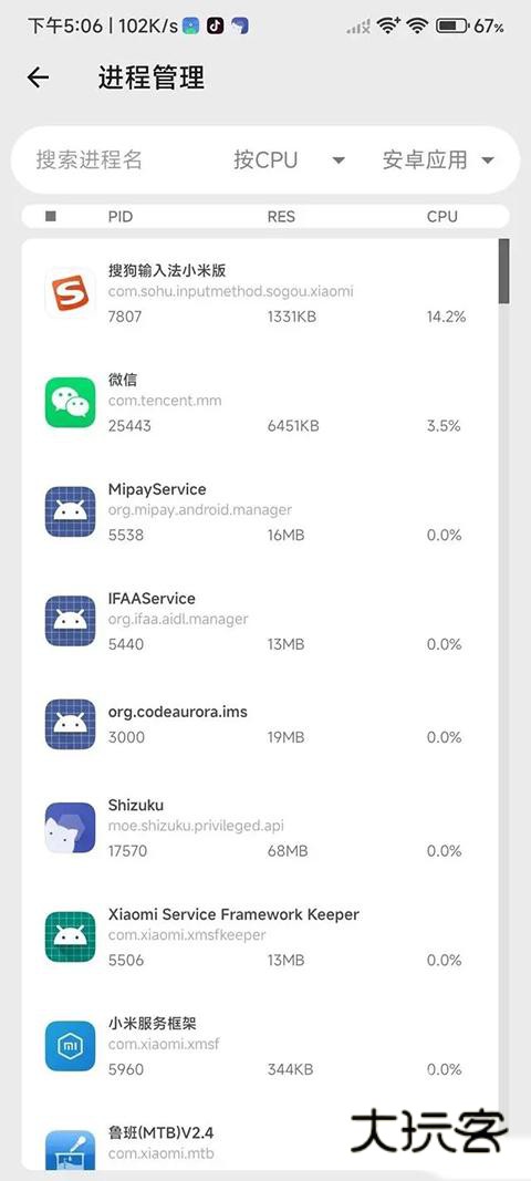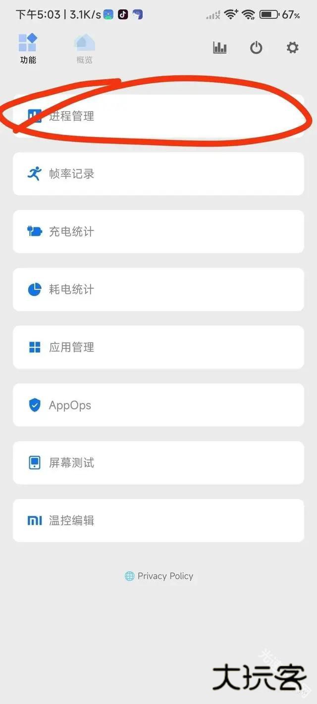 2、选择左上角的功能,有个进程管理,点进去即可查看后台情况。如图