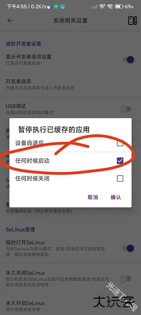 3、打开爱玩机,把权限打开。然后到主页找到系统相关,进去找到那个暂停执行已缓存的应用。