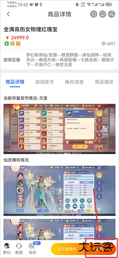 3、例如诛仙,进入该游戏商城列表后,挑选出你喜欢的商品进入