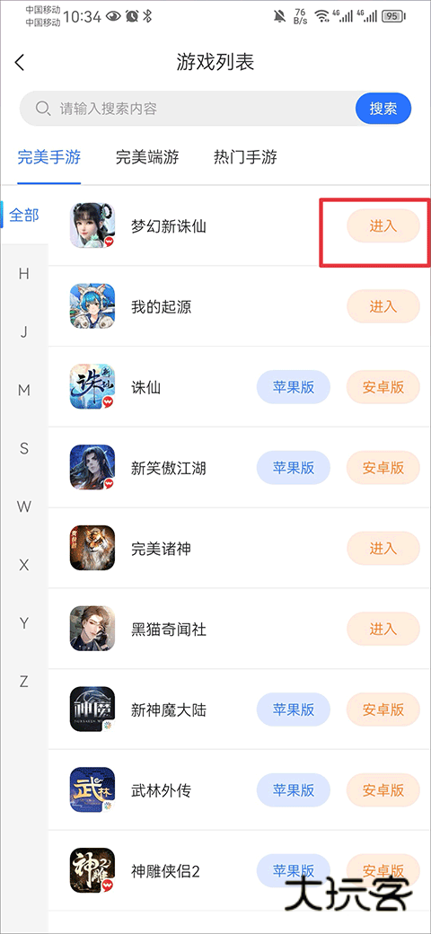 1、在我的界面中选择热门手游、完美端游、完美手游进入。