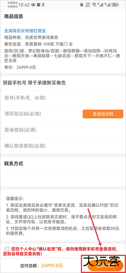 6、买家确认付款,交易成功后,可进入游戏内找到交易平台的NPC,即可取出在交易平台购买成功的物品。