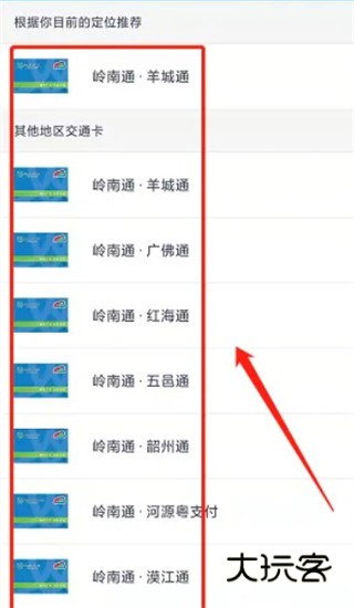 3、根据对应位置,选择相应的卡(岭南通app将根据定位自动为您推荐)