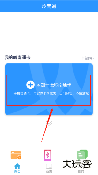 1、进入软件,点击首页的“添加一张岭南通卡”