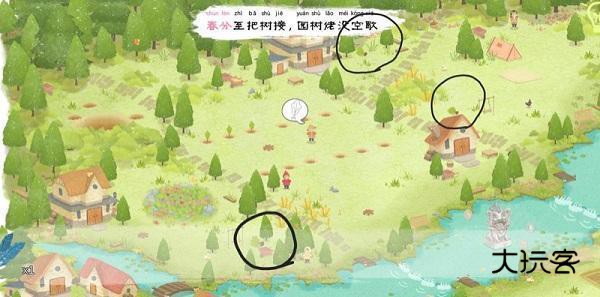 6、惊蛰在左上角中间那个洞(点几下会出来),然后拿旁边的梨子给他食枇杷树场所如图。