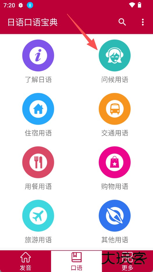 1、打开软件,选择要学习的场景类别,如问候用语。