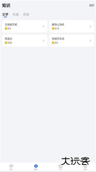 3、点击知识一栏还有关于文学、科普、历史相关的知识可以提前了解