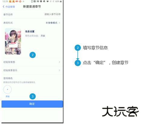 10、在正式编辑章节时,我们还需完善章节的信息,如背景图、章节名称、章节音乐等等;