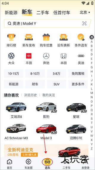 1、打开软件,选择下方的【选车】选项