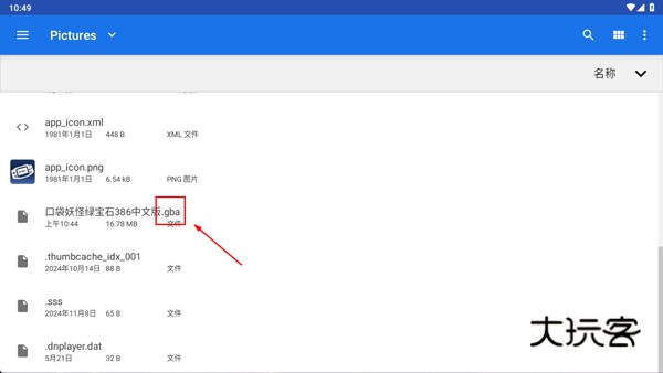 2、接着在手机文件夹找到要导入的gba游戏,需要玩家自己下载准备(后缀为.gba的文件)