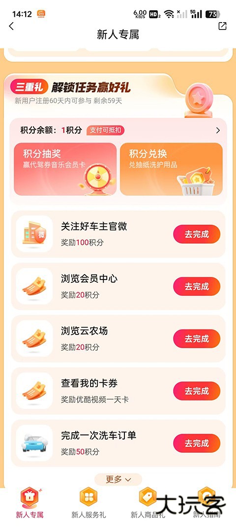 3、往下翻这里有着大额积分任务可以接取,积分可以兑换生活用品;