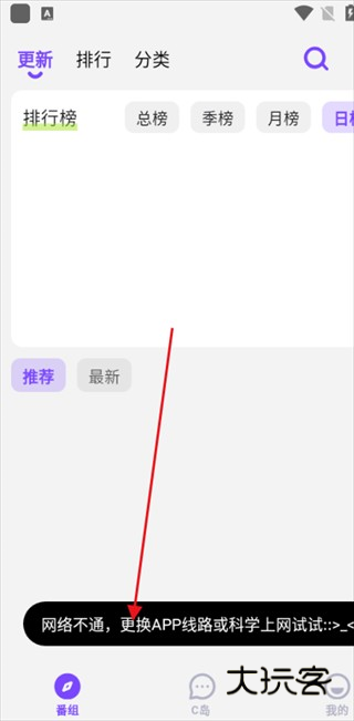 1、如果下载后进入软件页面显示不全并且有【网络不通,更换APP线路或科学上网试试】;