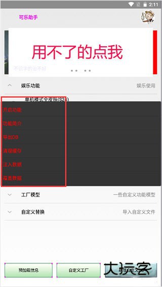 1、专为游戏打造的辅助工具,带来与王者荣耀相关的各种辅助服务、自定义替换、工厂模式等;