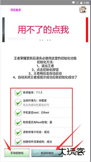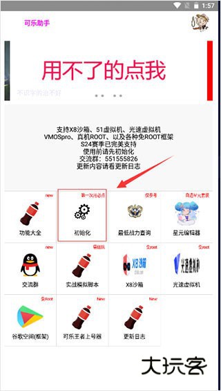 1、首先打开可乐助手,点击初始化;