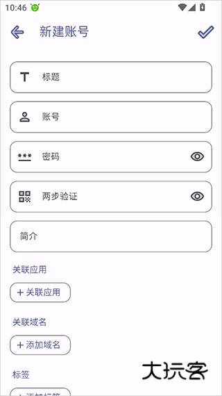 3、接着新建账号和密码时将关联的应用、网站域名等进行设置即可