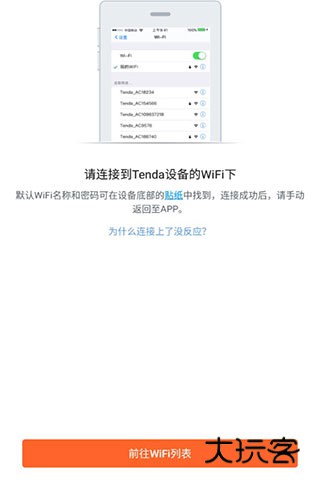 1、打开app,点击【前往wifi列表】跳转到wifi连接界面。