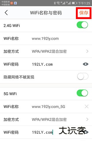 3、在打开后的界面,就可以重新设置路由器的wifi密码、wifi名称了,设置完成后,需要点击右上角的保存按钮,让配置生效。