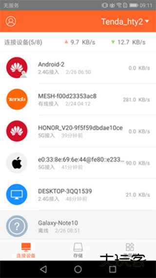 1、通过Tendawifi可以在家里的任何地方查看当前网络上传下载速度,或是对设备进行限速。