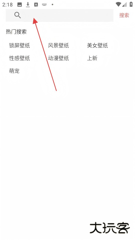 1、点击页面顶部的搜索图标,进入搜索界面。
