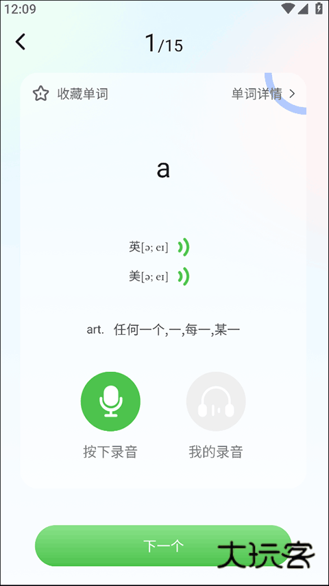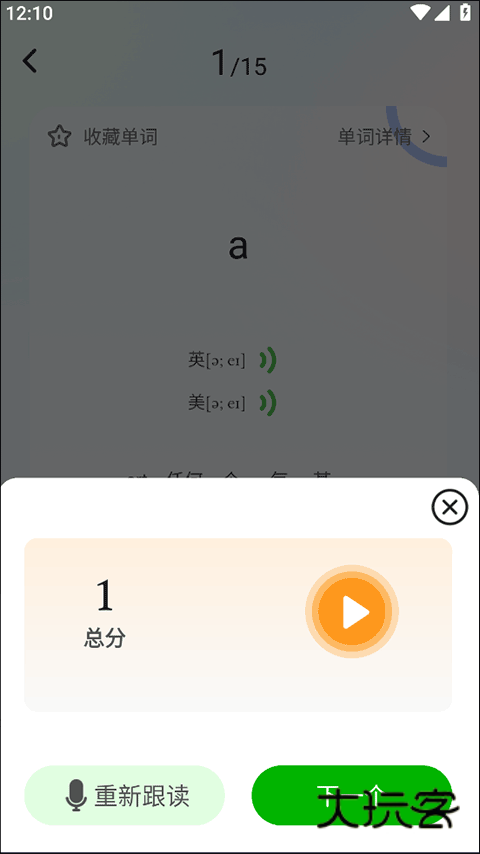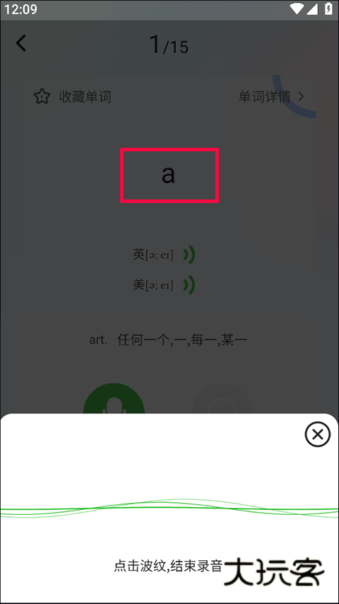 8、在弹出的方框内说出红色方框内的单词,点击波纹结束;