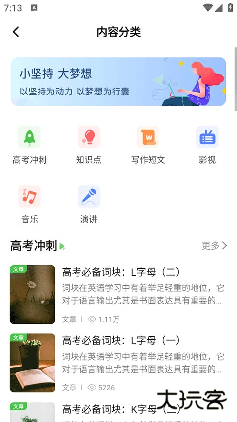 5、还有高考冲刺、知识点、写作短文、影视、音乐及演讲。