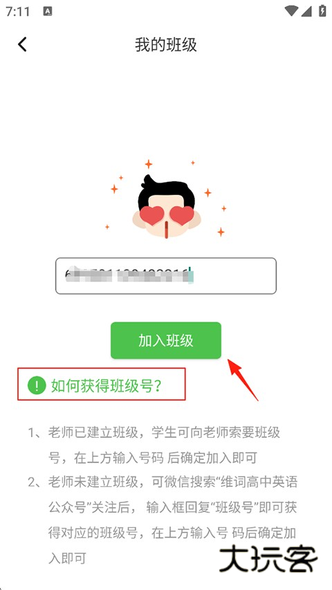 2、输入班级号后点击加入班级,获得班级号的方法如下图所示;