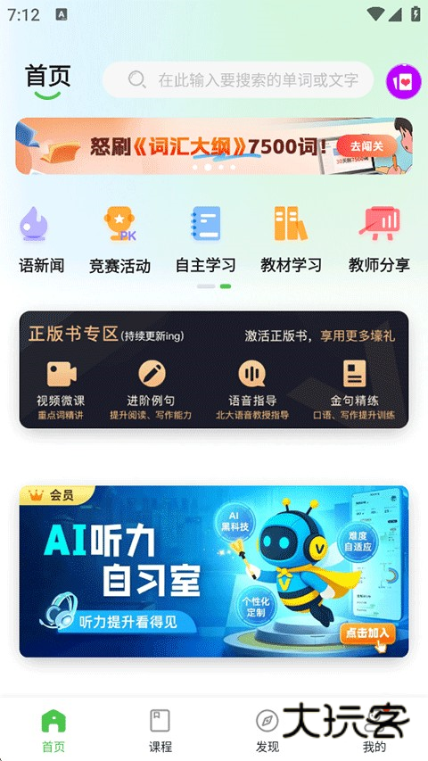 3、随后就可以在首页体验自主学习、教材分享等功能服务;